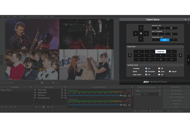 OBS Plugin của AVer dành cho dòng sản phẩm Camera PTZ được thiết kế đặc biệt cho trình phát OBS (Open Broadcaster Software) để thưởng thức video truyền trực tuyến với chất lượng cao. Các Streamer có thể điều khiển các Camera PTZ một cách đơn giản, bao gồm các chức năng Theo dõi Tự động (Auto Tracking) trực tiếp trong OBS, và bắt đầu trải nghiệm phát sóng trực tiếp chương trình cùng thời gian thực và ghi lại đồng thời chương trình với chất lượng video tuyệt vời nhất. Hãy cùng tìm hiểu thêm khả năng quay video và phát trực tiếp với Camera PTZ AVer ProAV!